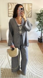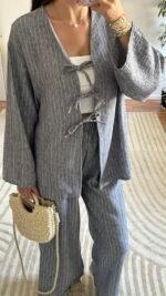 Accueil Soldes Ensemble à noeuds effet lin rayé
